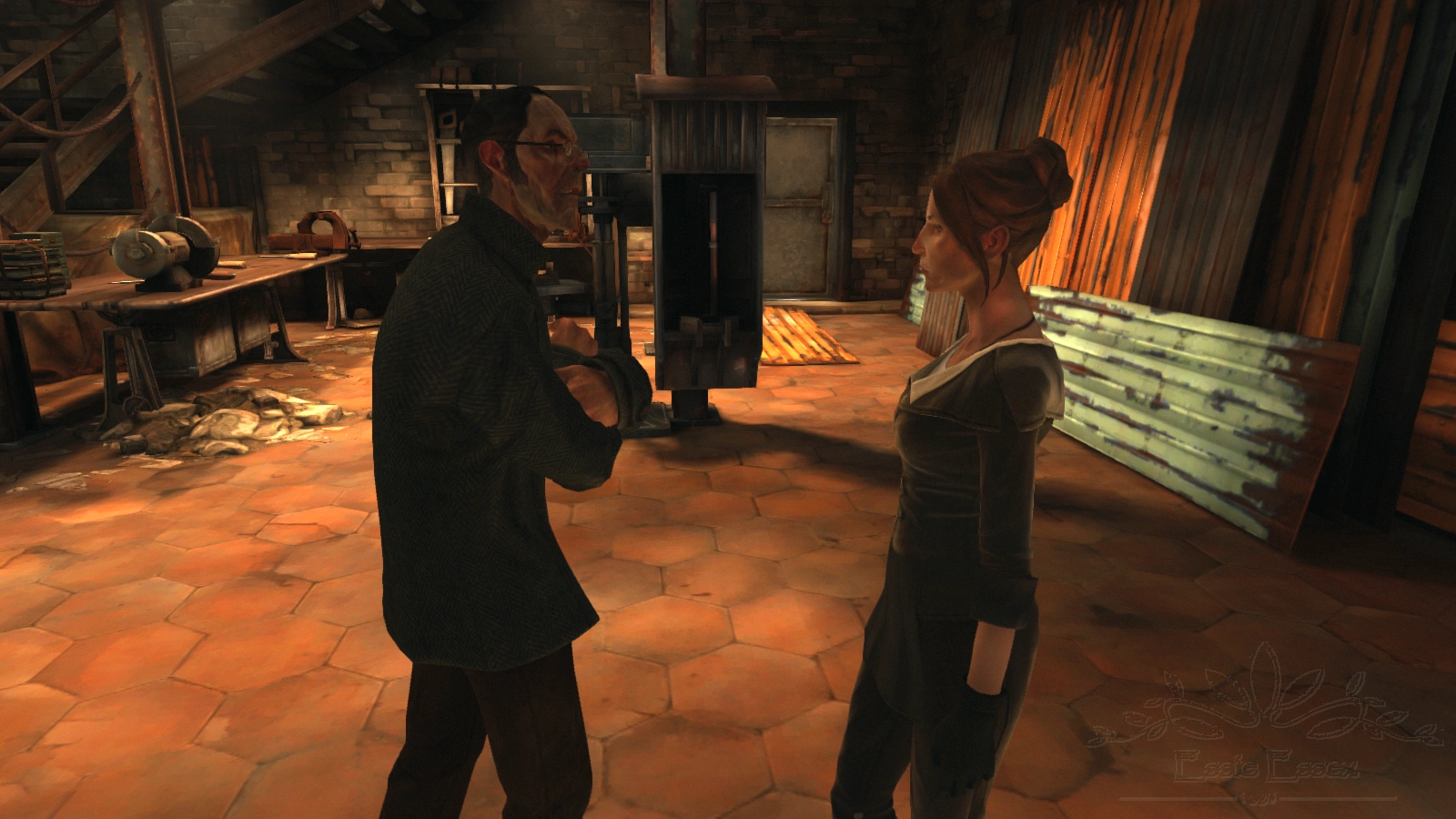 Granny Rags tells Corvo a story in the House of Pleasure mission.