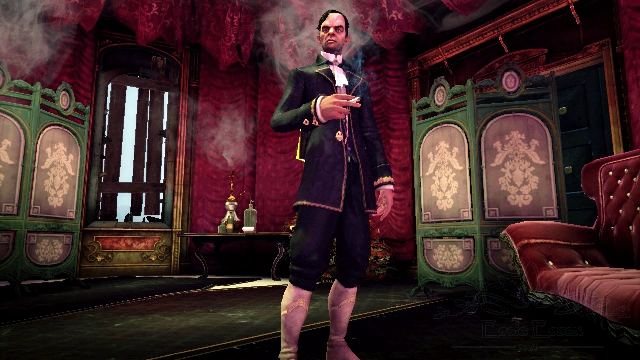 Both the Smoking Room and the Gold Room are on the third floor. To gain access to the smoking room, the easiest method is to enter from the outer balcony, which can be reached from another balcony nearby. Corvo can enter through the door. If Corvo wishes to be stealthy, he can hide behind the room divider or underneath the dresser.
