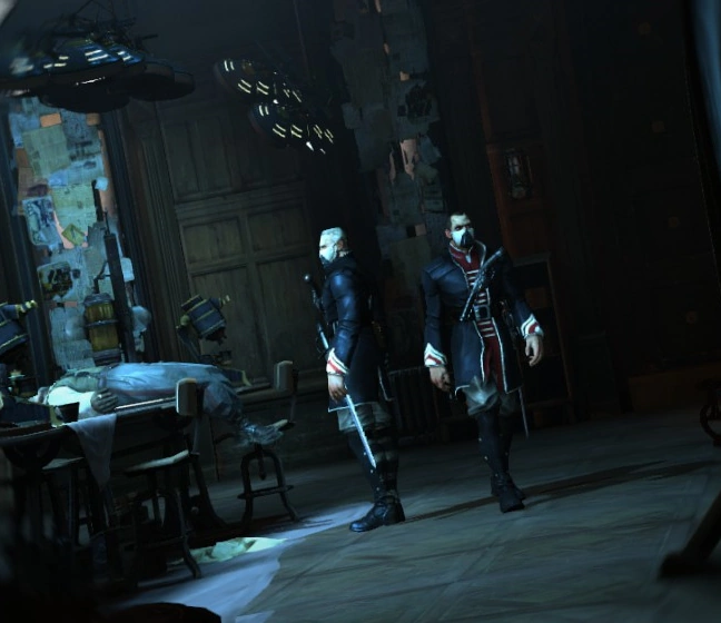 On the second floor, the thugs will be distracted as they view a Sokolov painting, making it easy for Corvo to either sneak past them or take them out.