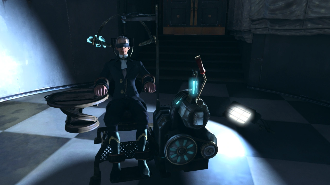 While the locations of the Pendleton brothers change with each playthrough, Bunting is always in the Silver Room. When Corvo enters, Bunting is blindfolded and strapped into an electric chair. He mistakes Corvo for his typical courtesan, and chooses a safe word before instructing Corvo to shock him.