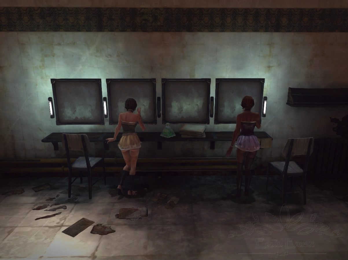 The Steam Room is on the lower level, where two guards can be found discussing the Pendletons' financial situation. Once they are finished speaking, one will patrol the room while the other stands with his back to the stairs. Morgan is in the nearest room with a courtesan, Loulia, and discusses politics with her while receiving a hand massage. To easily kill Morgan, Corvo can enter the caged room across from the stairs where he can increase the steam until it bursts from the pipes, killing Morgan and the courtesan and earning an achievement.