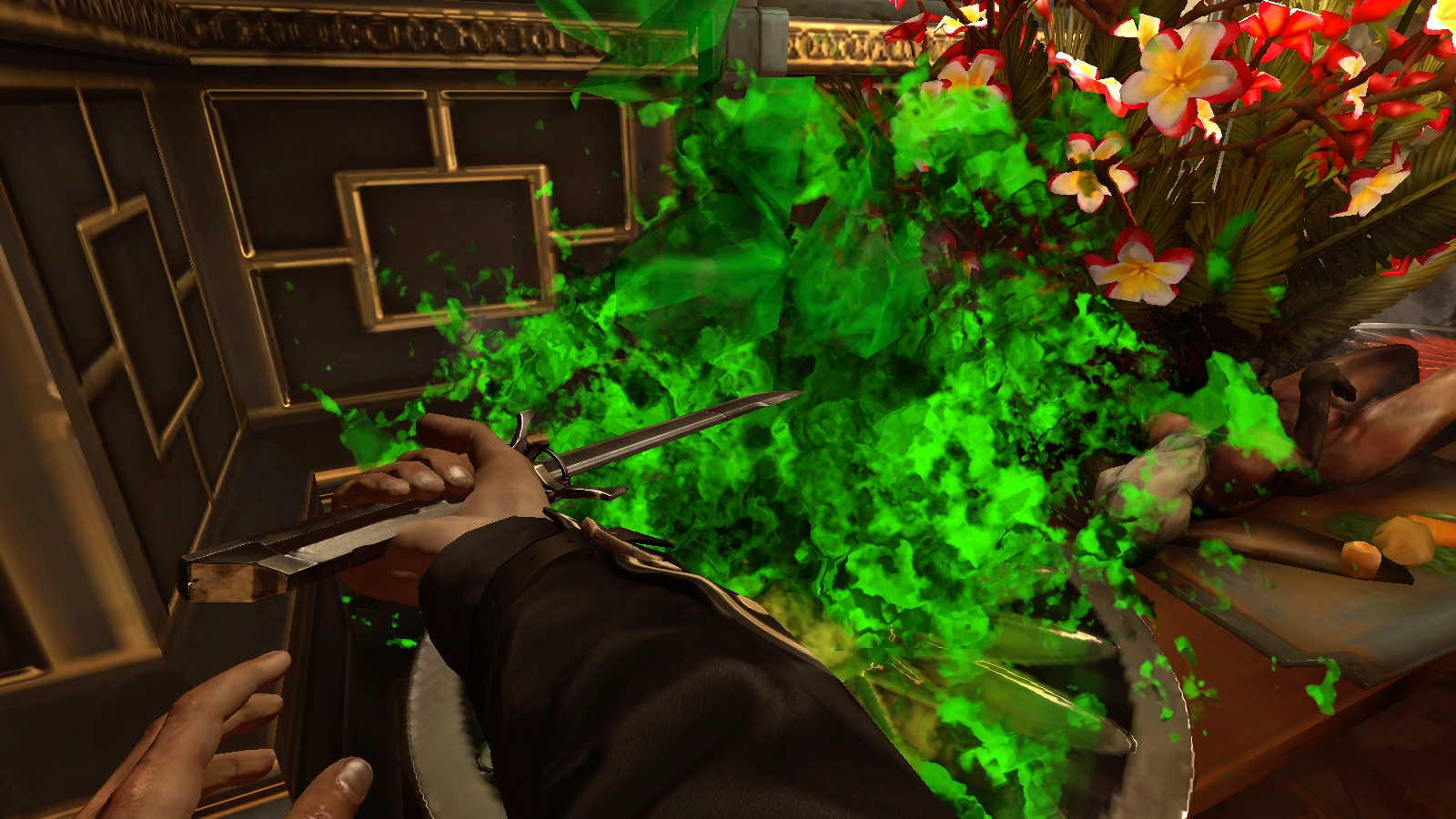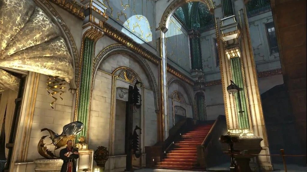 - Corvo can distract or neutralize a guard who is blocking a servant-access stairway off the banquet hall.