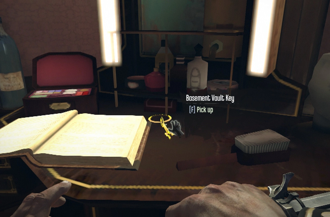 - Find a small key in the water near the sewer door to access this area. This leads Corvo to the wine cellar beneath the mansion. From there, he can walk up the stairs to join the party, although he should be mindful of guards patrolling the area.