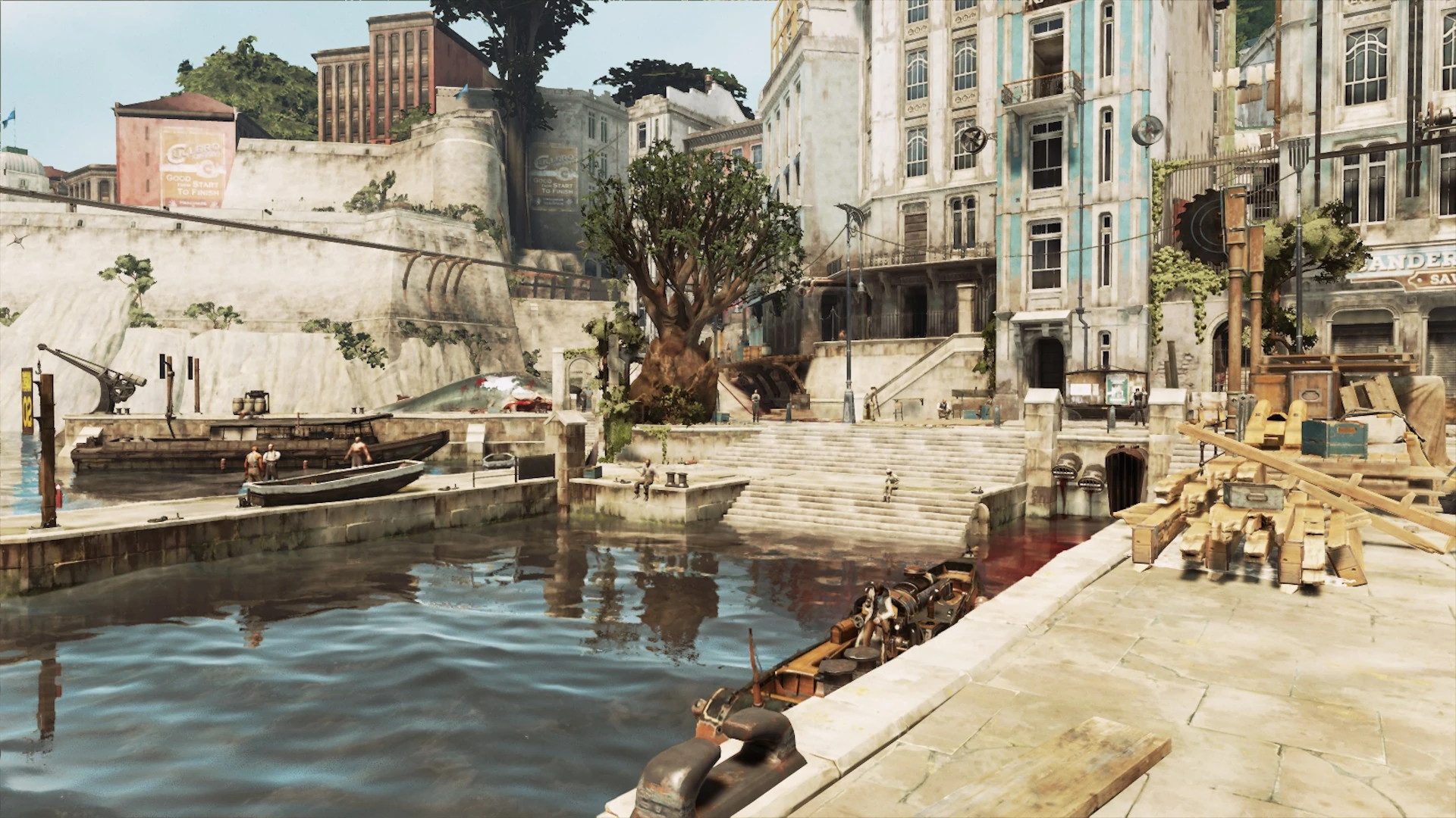 造船厂本身的范围从内陆延伸至海洋本身。这一地区有鱼市,负责加工鱼肉和鲸鱼肉。还有着造船工人,黑市商店和像是拉莫斯(Ramos)的走私者。佛雷契和女儿公司是贾思敏·考德温号的负责者,他们的办公室位于海滨附近公寓里的二楼。许多平民会在这里闲逛,讨论有关大卫队,血蝇以及公爵税收的事情。由于血蝇的关系,造船厂的邻里关系不再和睦[2]。