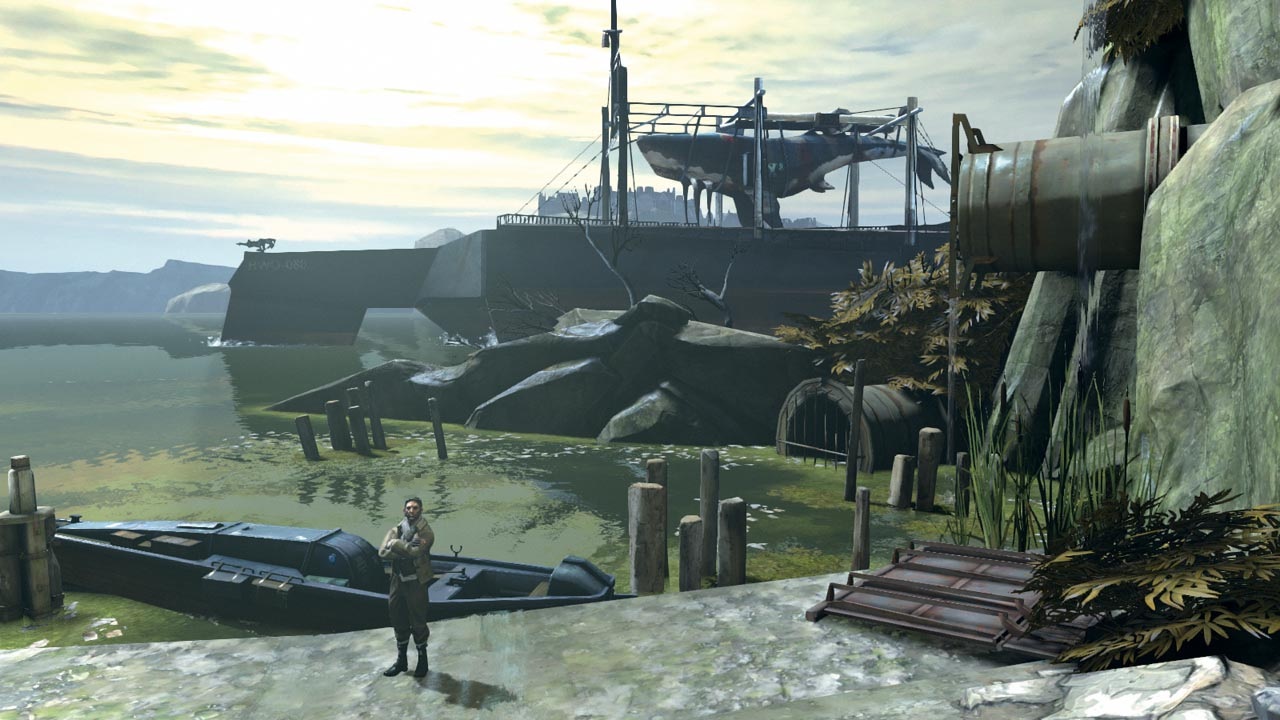 在科尔沃爬过房间从上方跳下来以后,他需要潜入附近的水中游泳穿过下水道的出口。如果科尔沃在出口的位置回头,那他可以在附近发现一对已死的夫妻拥抱在一起的尸体,旁边还有一本日记。继续向前走会发现一个曲柄轮,科尔沃必须要转动它才能继续前进,为此他需要将一具靠在曲柄轮上的尸体移开。转动轮子可以打开一条通往地下蓄水池的道路,当科尔沃走进去的时候,会有城市卫队的人从蓄水池上方扔下来两具尸体。