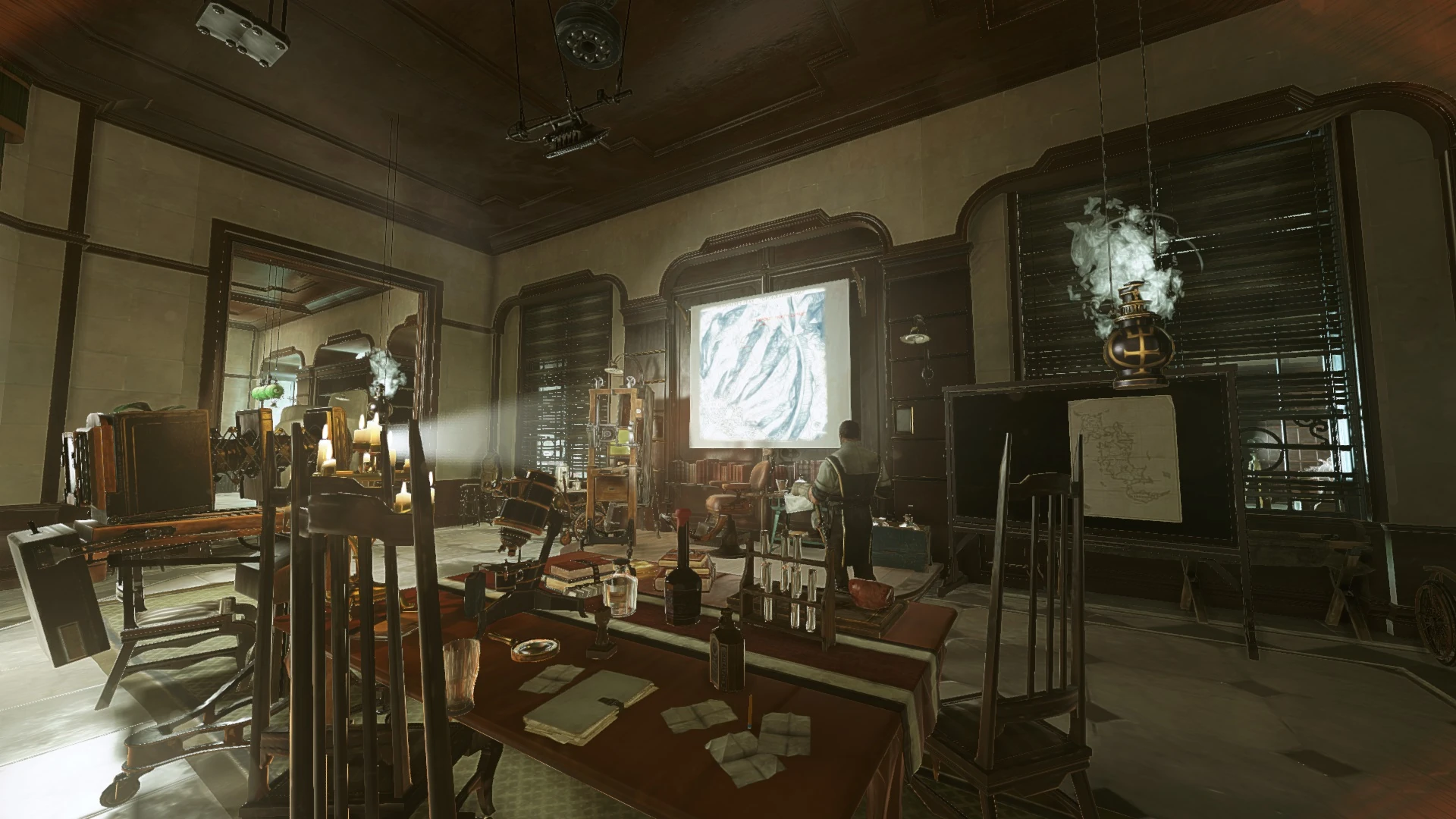 使用“盗貌”盗取卡多扎的身份后,比莉就可以大摇大摆的来到阳台,之后与罗瑟文进行对话,她就会亲手将档案——一张银图交到比莉这名异教徒的手上。之后比莉需要找到一台投影仪查看银图里的内容。如果比莉打算直接从罗瑟文那里拿到档案,就必须谨慎行事。罗瑟文的身边有几名神谕姐妹正在负责保护她。并且一旦比莉拿走罗瑟文身上的银图,她就会从冥想中清醒过来。比莉需要先将负责保护的神谕姐妹解决,然后偷偷绕到罗瑟文的背后,在别处放置一个“易位”,拿到银图后立马使用能力。这样比莉就不会被罗瑟文发现。如果比莉选择最后一种方法,那么花费的时间成本会比前两者都多。卡多扎在拿到银图后会好奇里面是什么内容让罗瑟文如此重视,于是他慢慢走向美术馆一楼大厅的投影仪。比莉需要在不被其发现的情况下,慢慢跟着下去。一旦卡多扎看到督军或是神谕姐妹的尸体,他就会警觉起来并开始四处搜寻。或者他对身后的比莉产生了警觉,也会造成这一结果。
